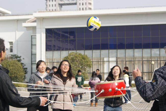 此次活动得到了学工部、中德学院、计算机系领导的大力支持,活动分为2个环节:破冰之旅和一鼓作气。在相互认识之后,团队活动正式开始,各自的比赛组还分别取名为创可贴队与集结号队。队员间相互配合的默契程度成为了取胜的关键,集结号队队长似乎找到了比赛的规律,信心满满地组织着大家拉紧手中的引线,更好的控制着排球的起落高度。创可贴队也是不甘示弱,大家紧盯排球,一步一步的努力接球。精灵般的排球在大鼓上来回弹跳,大家的心也跟着排球上下跳动。天气虽然寒冷,但大家的心都是暖暖的,小小的操场洋溢着欢声笑语。中德学院和计算机系心理指导老师更是紧随两队指导。最后还是集结号队略胜一筹,然而结果并不重要,重要的是大家的都沉浸在活动的愉悦之中,学生素质拓展培训也在轻松愉快的环境中落下帷幕。 (中德学院 王野供稿)