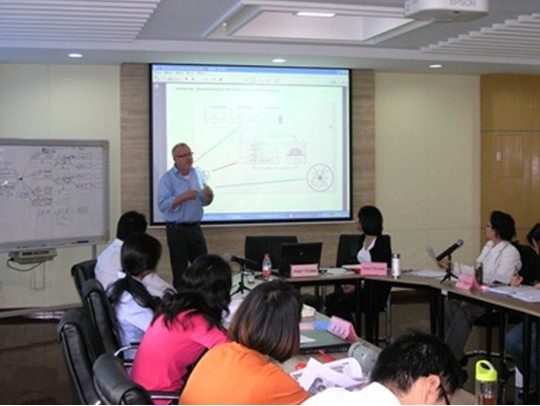 首先,主讲教师Wolfgang Voiss教授对几周来的培训感到很满意,表示在整个培训过程中与学员相处得很愉快。随后他带领大家简要地回顾了培训内容,对德国“双元制”理念以及实际运行过程中的机制进行了梳理,对 “双元制”在人才培养过程中的特点和优势进行了说明。他重点谈到了项目导向和行动导向的先进理念,在行动导向的过程中要注重关键素质以及行为能力等的培养。在项目导向的过程中要考虑如何设计和开发项目,如何体现关键素质和行为能力,如何和课程体系结合起来,如何利用考题开发练习项目等,并希望学员能够将项目导向、行为导向融会贯通到教学过程中。