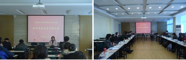 学院党委书记、院长杨秀英介绍了国际交流与合作的背景以及此次研讨会的目的,指出上海作为一个国际化大都市,职业教育国际交流发展可谓大势所趋,培养具有国际视野并有国际交往能力的学生应成为学院人才培养的目标。在国际交流与合作的过程中我们一定要清晰到底要学习和研究什么,通过交流与研讨,从不同的视角,吸收借鉴,在本职岗位上做好工作。