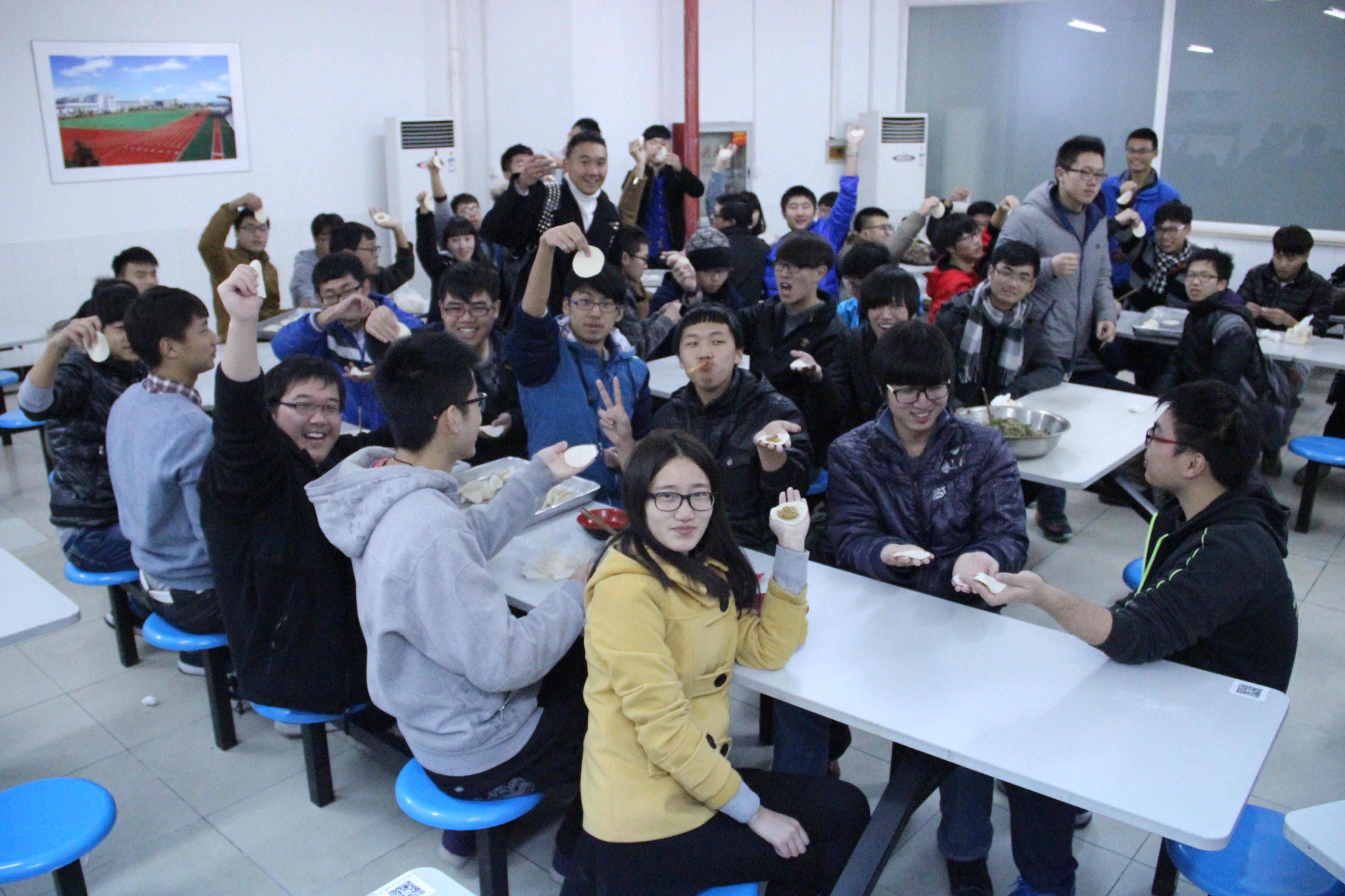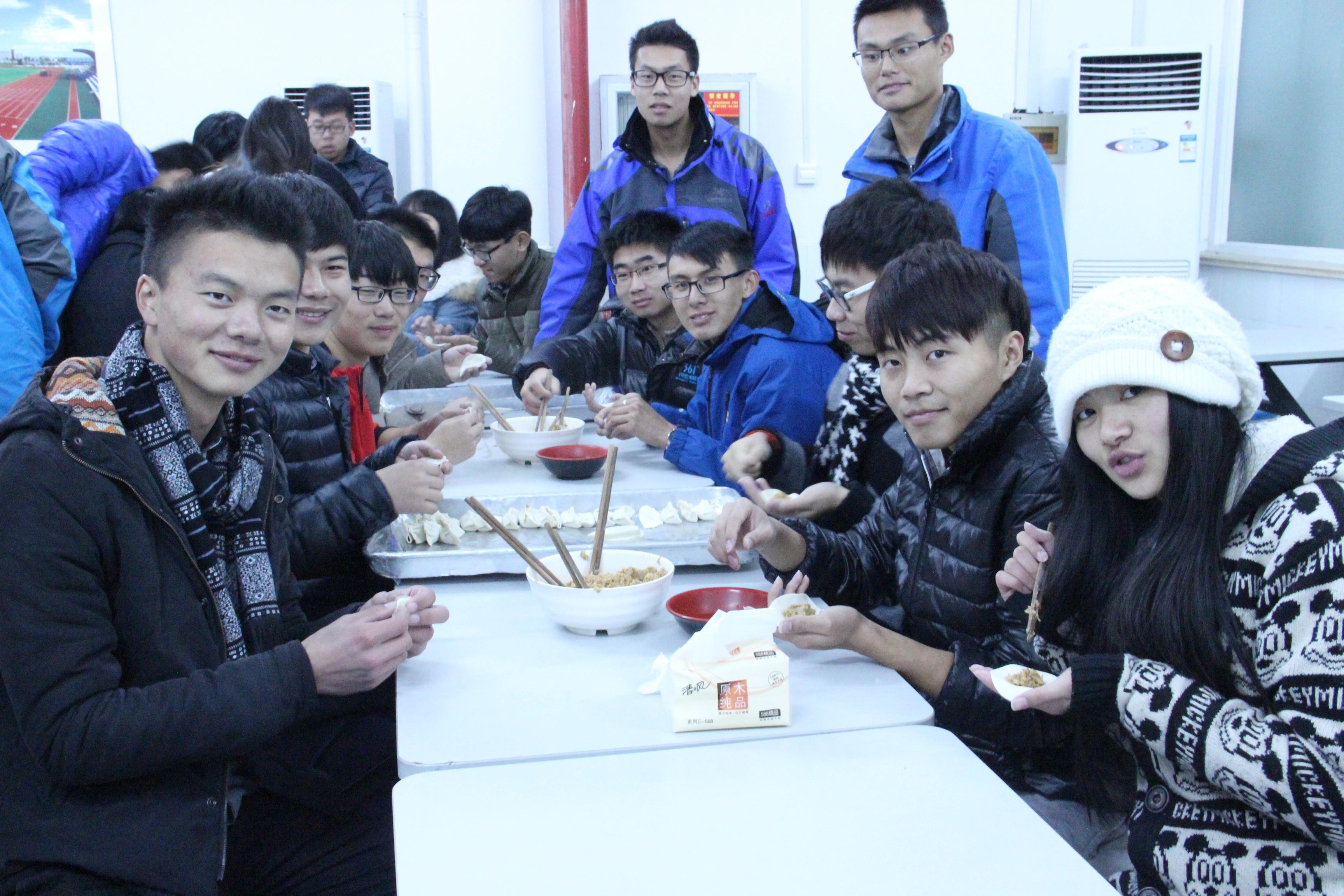 2014年12月22日,时值二十四节气中的冬至日。秉承着传扬中华美食的理念,并培养同学们的动手能力,中德学院团总支学生会特在食堂二楼餐厅举办包饺子主题活动。活动旨在促进团总支学生会成员间的团结,提高同学们团队合作精神,同时让14级新进干事感受丰富多彩的大学生活。