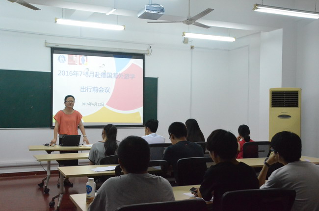 2016年6月22日中午,中德学院赴德国交流学习学生行前会议在F102会议室召开,会议由中德学院副院长、党支部副书记蔡林洁老师主持。