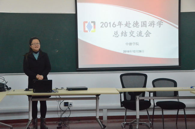 本次座谈会在轻松愉快地氛围中展开了。首先由两位带队老师分别介绍了本次三个月和一个月德国游学的学习内容和生活经历。接着分别由三个月和一个月德国游学的学生代表以及赴加拿大半个月游学交流的学生代表,以PPT的形式,从学生自己的角度总结和阐述游学的所见、所闻、所感,一致感叹走出国门的交流不仅开拓了眼界,而且锻炼了技能、提升了综合素质。