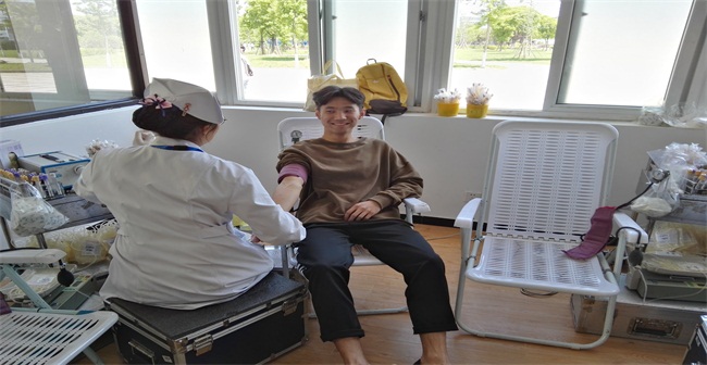 上午8:30,同学们填写完无偿献血信息表之后,在老师和志愿者的带领下有序地来到图文信息中心,等待着献爱心的那一刻。志愿者们也提前做好准备工作,配合医生开展献血活动。即使炎热的天气,也挡不了大家献爱心的热情。填表、化验、抽血……所有流程都在志愿者和老师的组织下,井然有序地进行着。此外,志愿者们和老师们也时刻关心着参加献血的同学,亲自为他们送上一杯热牛奶,整个现场都充满着爱的味道,让爱心在彼此之间互相传递着。一股股青春热血,一颗颗无私之心,每个人的心里只有献血后的光荣和自豪感。