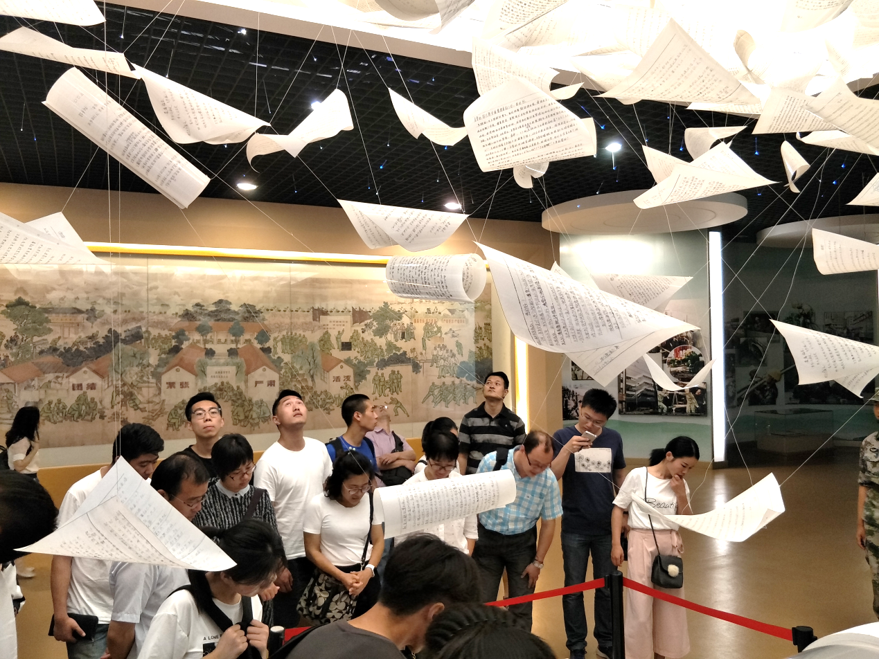 (图为师生们阅读八连的英雄表彰书)