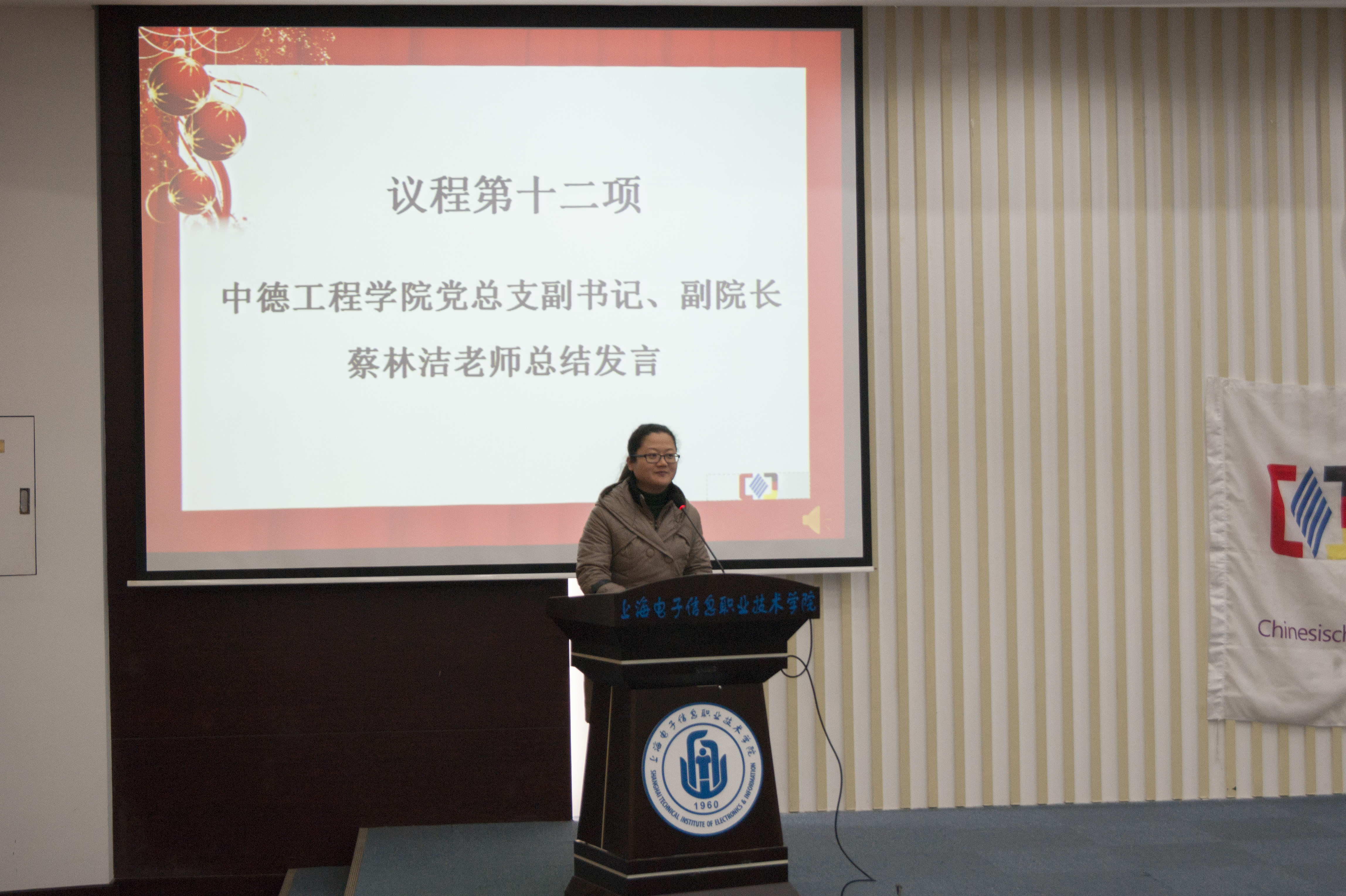 大会最后,由蔡林洁老师做全年学生工作总结,她向受表彰的同学表示衷心祝贺,也对2017年度所有团学干部为学院所做出的努力和成绩表示充分的肯定,她指出“学校的改革发展离不开全体师生的共同努力,大家要为学校深化教育教学改革,强化新理念、开拓新思路、明确新目标、寻求新突破、实现新跨越,要以这次总结表彰为契机,从现在做起,发扬成绩,勤于学习,众志成城,撸起袖子加油干,进一步开创中德学子学习与工作的新局面。”