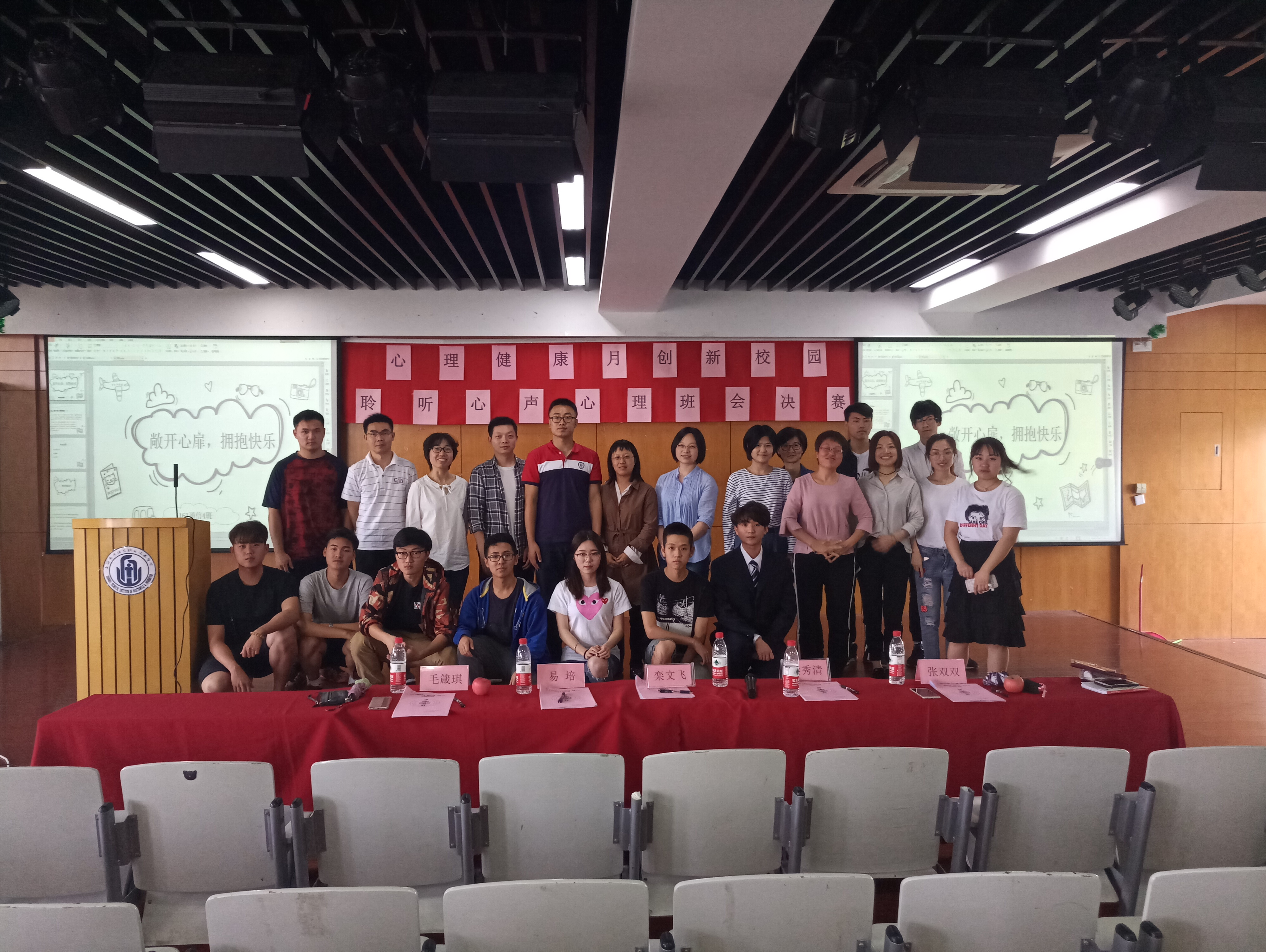 为了提高大学生心理调节能力,培养良好心理品质,促进大学生思想道德素质和心理健康成长,由中德工程学院承办的“创新校园,聆听心声”心理班会大赛于2018年5月23日在I401教室开展。出席本次活动的评委老师有学工部副部长栾文飞老师,心理健康教育与咨询中心梁秀清老师、易培老师,学工部张双双老师、毛箴琪老师,以及来自各二级学院的心理兼职教师为本次活动的特邀嘉宾。