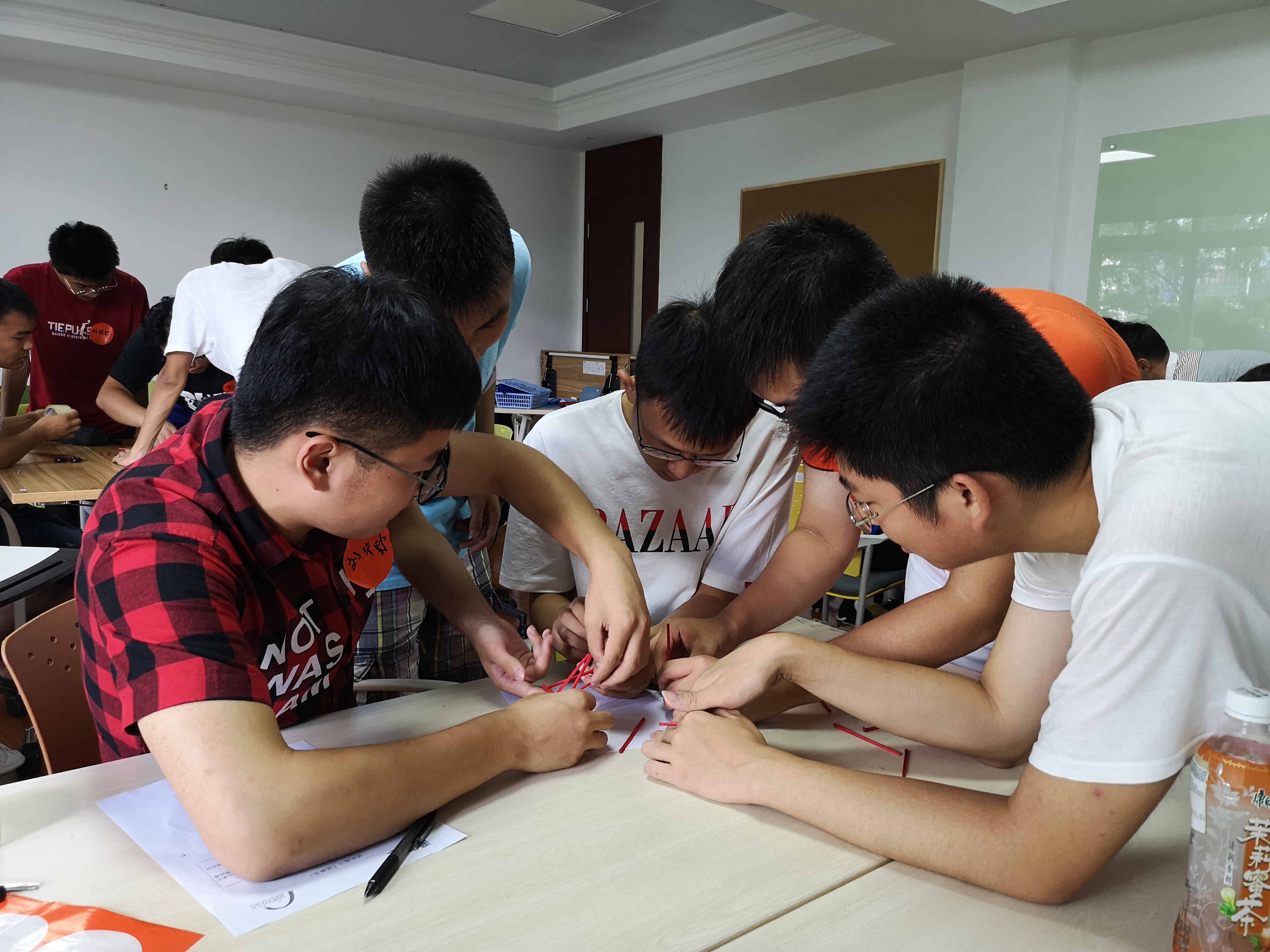 对于即将成为职业人的我们而言,工作本身就蕴含团队协作。在培训项目搭建小球运动轨道游戏中,同学们一开始各抒己见,各有各的想法,不知道先做什么后做什么,不明确自身在团队角色的定位。但随着时间的推移和思考,大家开始取长补短,以自身优势为核心,逐步分工合作,在团队中找到最佳位置。例如分工做支架、做轨道、做弯道、固定接口等,然后一起合作通过实践补漏,逐步完善,最终出色完成任务。从项目过程不难看出,需要积极地参与并很快领会和把握要领,克服心理认知或客观环境上的局限,从而提升团队能力,激发创新思维能力和实践动手能力,同时也能增强团队协作精神,利于培养我们职业类学生的优秀人格和职业能力。