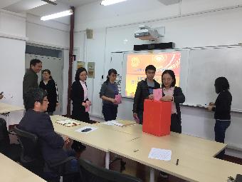 中德工程学院党政领导及全体教职员工共计41人出席本次选举大会。本次换届选举大会为充分体现各部门群众意见同时有力推进各部门的工作,由机电系、通信系、航空系、学生管理办公室以及行政管理部门(含院办、总支办和教务)5部门各推荐候选人5人,其中1人为本部门会员,另4人分别为其他部门会员。由分工会换届选举筹备工作小组汇总,并结合被推荐人的综合情况和部门分布最后确定正式候选人6名。大会根据基层工会选举的要求和程序,通过了中德工程学院分工会选举方案和监票人、计票人、唱票人建议名单。本次大会应到44人,实到41人,出席大会人数超过总人数的三分之二,选举有效。在总监票人嵇丽丽老师的主持下,采取无记名投票和差额选举的方式,按照程序进行投票、唱票、计票,选举产生了中德工程学院分工会第三届工会委员(按姓氏笔画为序):杨涛、周暖、姚一平、彭锦、戴正阳。