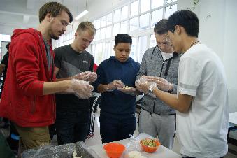 第三届中德文化周开幕式暨魅力中德诗词鉴赏于10月22日在I401如期举行,活动从观看中德工程学院团学组织记录短片《曾经的回忆》开始,正所谓“英雄不问出处”,在接下来的展示活动中,中德双方诗词代表佳作以交叉展示的形式呈现给大家,中德文化不断碰撞的火花使现场的气氛一次又一次地推上了高潮,整个会场沉浸于诗词所带来的微妙意境之中;10月23号在F211教室进行了团学干部和干事“破冰行动”,在迎接新团学干部加入中德大家庭的同时,围绕团队中的协作、信任、凝聚力等方面开展了系列趣味游戏,不仅提升了新生间的融洽性,而且为今后团学干事日常工作心态及效率等方面的优秀品质打下牢固的基础,促进了中德工程学院团学大家庭的稳定和谐;10月24号下午4点30分在B楼大厅举行了“梦回汉德”系列中德文化交流活动,中德双方从民俗特色、传统文化、建筑风情等方面所呈现出的不仅是文化的交融,更是时代改变所带来的历史文化。随后围绕活动主题所开展的文墨、茶艺和手工艺等3个版块的活动成功地把德国友人带入到华夏文化中,无论是茶艺茶味的芬芳扑鼻,还是书法笔锋的苍劲有力,又或是折纸及绳结的传统艺术都牢牢吸引了德国友人的眼球;10月25日下午4点30分在食堂二楼开展了“舌尖上的中德”之中德美食鉴赏活动,通过德国友人介绍的餐桌礼仪、日常饮食、特色美食等方面不仅为我们展现了感官上的诱惑,更是科技发展所带来的便利。之后中华传统美食饺子的手艺展示及现场教学使整个活动氛围达到了顶峰,在中德双方的齐心协力下热乎乎的饺子终于被搬上了餐桌,并迅速被席卷而空,完全跟不上煮熟的速度。