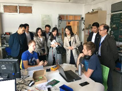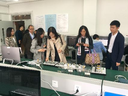 沈阳职业技术学院的老师们首先参观了中德工程学院电子创新工作室以及PLC、电气控制、电工电子、柔性生产线、机械装调与维护等机电类实验实训室。他们对中德工程学院的实验实训室建设、仪器设备配置和管理、学生创新能力培养等方面给予了高度的评价。