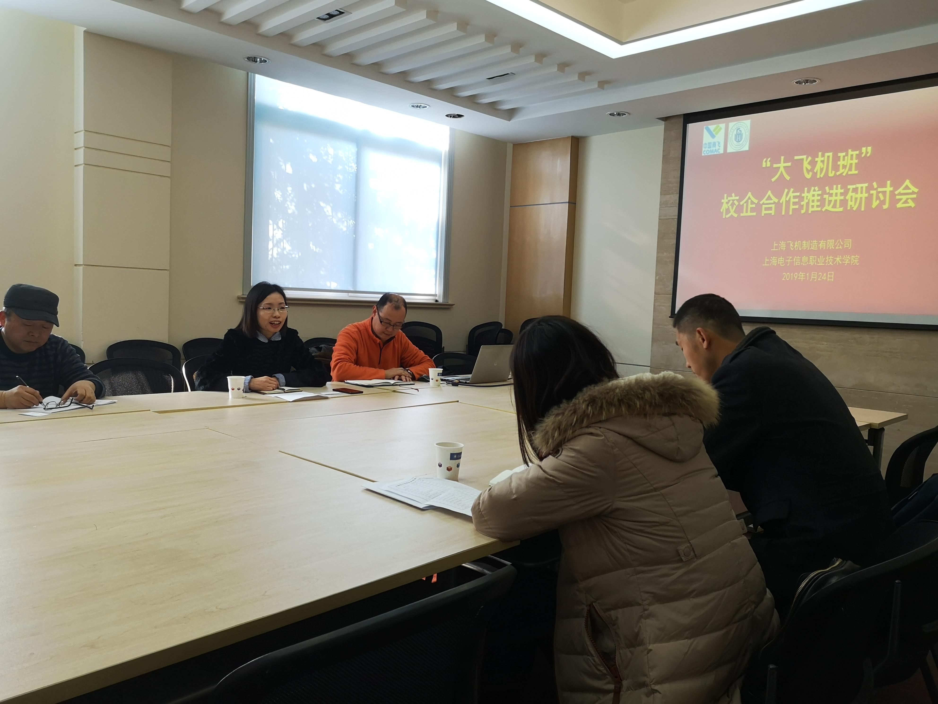 2019年1月24日在徐汇校区召开了“大飞机班”校企合作推进研讨会。校企合作处、中国商飞上海飞机制造有限公司(简称“商飞”)培训部、中德工程学院相关人员参加会议。