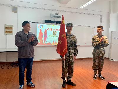 仪式上,由倪军老师为“中德连”授旗,施云美及倪军老师共同授予学生入连荣誉证书。倪军老师激励大家:“希望学员能够在学院领导的支持领导下,退伍老师和学生的带领下,能够传承军队作风,关注国家大事,心系祖国安危,为我校的国防知识宣讲,征兵宣传作出表率”。施云美老师勉励大家:“作为中德工程学院第一支特殊队伍,肩负着极其重要的任务和使命,希望我们的队伍能够秉承积极向上、努力拼搏的精神,争当学生中的表率和楷模,带着荣誉感和使命感,为“中德连”代言。