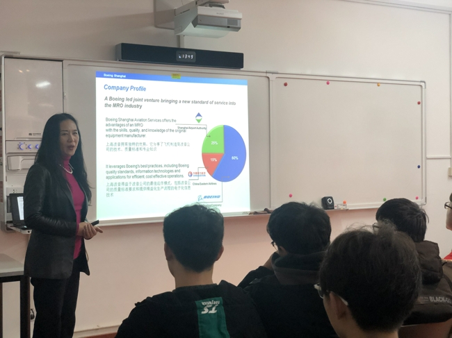本次宣讲会仍由上海波音公司人力资源总监周霞女士带队,在宣讲会现场,企业代表对上海波音公司的发展概况和公司的内设部门进行了介绍,并与同学们进行交流互动,极让同学们受益匪浅。工程技术部门的企业代表对公司的大修部、后援部、航线部这三个部门与主要工作内容进行了介绍,与会同学对企业有了更深入的了解。