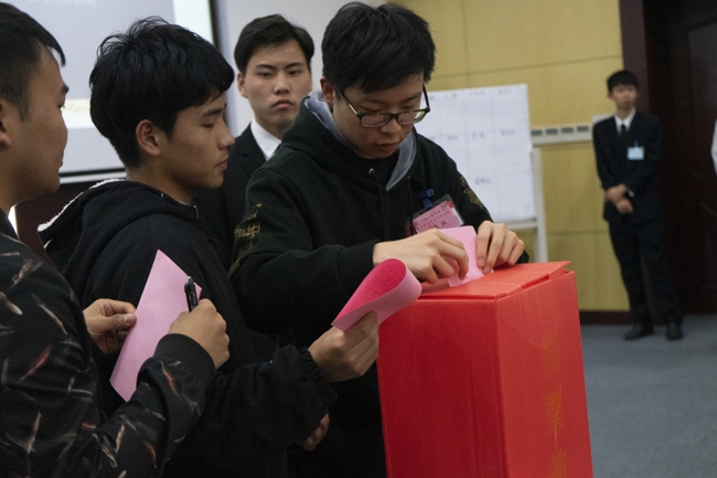 本次大会由团总支办公室姚吉主持,大会在庄严的国歌声中拉开帷幕,随后由上海电子信息职业技术学院团委书记蔡林洁老师致开幕辞,蔡老师围绕着“坚持正确的政治方向”、“以同学为本,反映同学意愿”、“完善学生会体制机制”这三项工作准则为中德工程学院学生会工作提出了要求与期望,并祝愿中德学生会能成长为一个与党的期望、团的要求、学生需求相适应的学生组织。大会听取了筹备工作报告,之后听取、审议并通过了《中德工程学院第十四届学生会工作报告》。报告指出在过去的一年中学生会在多方面积极开展活动,为学生构筑了一个服务他人、锻炼自我的舞台,并提出在 今后的工作实践中不断完善学生会的各项制度与管理,秉承“感想、敢做、敢担当”的优良传统。在听取并审议通过《中德工程学院第十五次学生代表大会选举办法(草案)》、《中德工程学院第十五次学生代表大会总监票人、监票人、计票人、唱票人名单(草案)》后正式候选人围绕自身基本情况、工作成效及工作设想依次进行了竞选演讲,充分展示了自身综合素养及较强的工作能力。各学生代表秉承公开、公平、公正、惟贤惟德、能者居上的原则投上了自己神圣的一票。