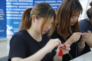 本次活动的核心环节为香包制作,在我院杨舟同学讲完端午和香包文化由来及制作流程后大家拿好材料跃跃欲试。在后续的香包制作过程中,我院与外语学院同学充分交流、互帮互助,遇到技术上的问题时,“杨老师”也会细心解答,在同学们巧妙双手的制作下,一个个形色各异、制作精良的三角粽香包诞生了。大家纷纷表示,活动不仅锻炼了大家的动手能力以及团队配合能力,也有效促进了两院学生文化与工作交流。