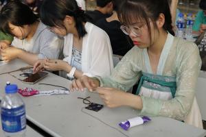 本次活动的核心环节为香包制作,在我院杨舟同学讲完端午和香包文化由来及制作流程后大家拿好材料跃跃欲试。在后续的香包制作过程中,我院与外语学院同学充分交流、互帮互助,遇到技术上的问题时,“杨老师”也会细心解答,在同学们巧妙双手的制作下,一个个形色各异、制作精良的三角粽香包诞生了。大家纷纷表示,活动不仅锻炼了大家的动手能力以及团队配合能力,也有效促进了两院学生文化与工作交流。