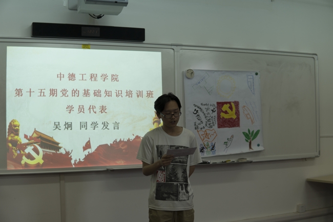 为祝贺历时近2个月的中德工程学院第15期党训班顺利结束,总结党训班学员们在此期间的不断成长与收获,于6月13日中午在F102举办了中德工程学院第十五期结业式。本次党训班学习形式多样,分为:理论讲解、十九大知识闯关测试、红色电影赏析、绘心中信仰主题涂鸦、爱国主义基地考察等,学员们在此期间学习党的知识、回顾党的光辉历史、提升党性修养、深刻理解自我的责任和担当。在老师们的深切期望和学员们的不断进步中为党训班画下一个完美的句号。