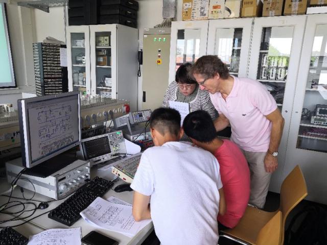 周五是Schaltungstechnik电路技术课,Wolf教授首先给我们介绍了实验室的器材,然后给我们演示了如何搭建电路,如何使用测量仪器对电路进行测量。教授认真严谨的态度吸引着我们每个人,在教授的感染下,我们仔细地搭建电路,认真地记录着实验数据,互相配合,积极专研。我们的学习态度得到了教授的肯定,同时我们也为自己的努力而点赞。