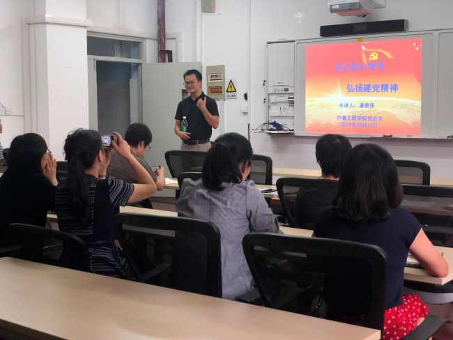9月11日下午,中德工程学院党总支邀请到虹口区委党校讲师、上海市虹口区专家讲师团成员潘秦保博士在F102作了题为:“牢记初心使命,弘扬建党精神”的专题讲座。这是一堂深入浅出的党课,潘老师形象地称中国共产党为“史上最成功的团队”,生动地讲述了中国共产党如何从建党初期区区十几个人到如今发展成为有九千万党员的世界第一大政党的发展历程,潘老师重点讲解了中国共产党的建党精神:一、开天辟地、敢为人先的首创精神;二、坚定理想、百折不挠的奋斗精神;三、立党为公、忠诚为民的奉献精神。在讲解的过程中,潘老师还引入了很多革命家的生平和小故事,非常引人入胜,在场的党员教师和入党积极分子深受启发,中国共产党的建党精神昭示着中国共产党人的初心。它所承载的首创精神、奋斗精神、奉献精神,是激励我们党顽强奋斗、不断发展壮大的精神动力,是我们党立党兴党、执政兴国的宝贵精神财富,也是新时代坚持和发展中国特色社会主义的坚强精神支撑。