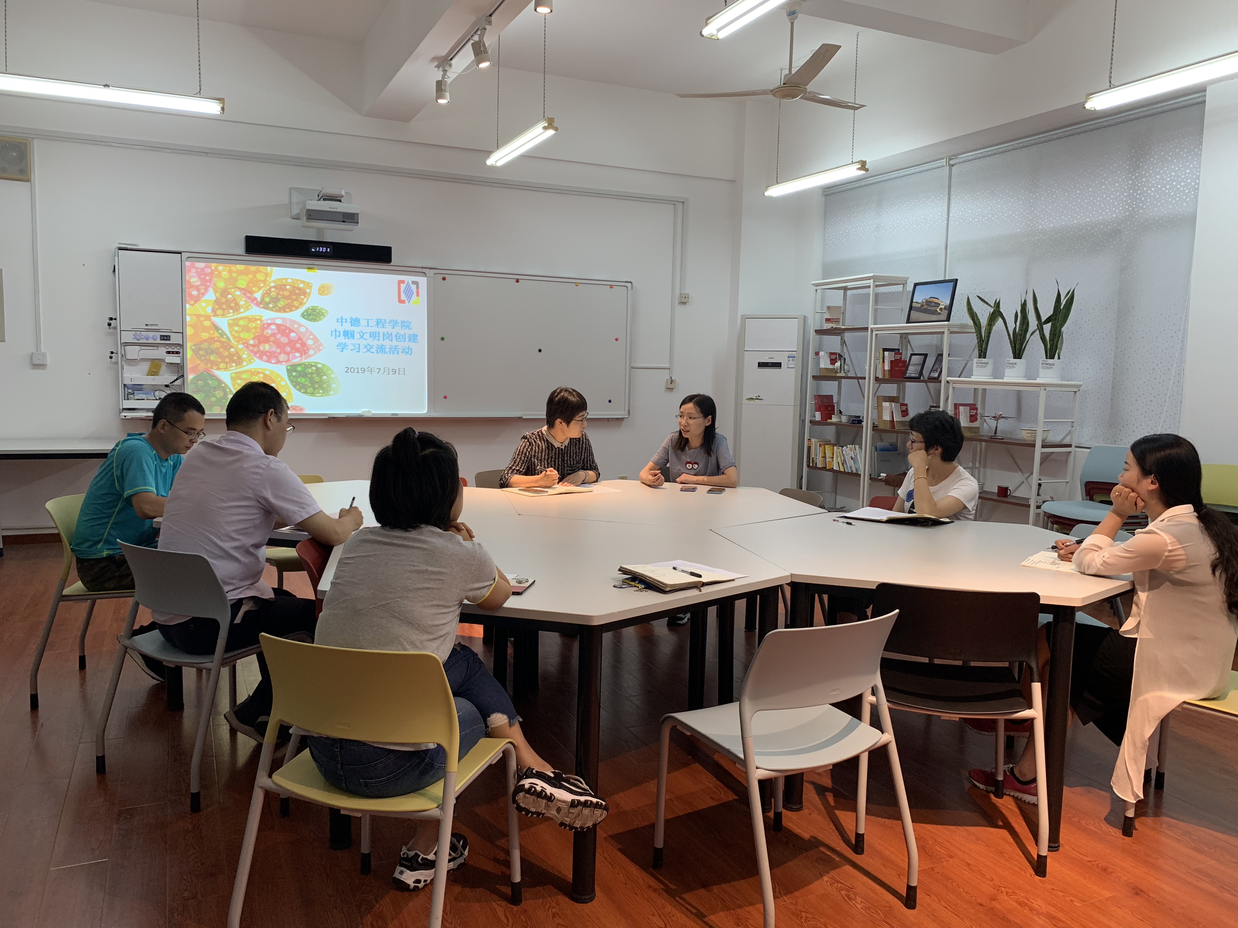 2019年6月12 日,中德工程学院邀请上海第二工业大学顾国星副教授做了《中国梦与高校教师的使命》的专题报告。7月9日,中德工程学院学生工作团队开展了主题为中国梦与高校教师的使命的学习交流活动,活动邀请了中德工程学院副院长,荣获“2017年度上海市巾帼文明岗”团队负责人黄婷婷老师进行学习指导,中德工程学院学生工作团队全体老师参加了活动。