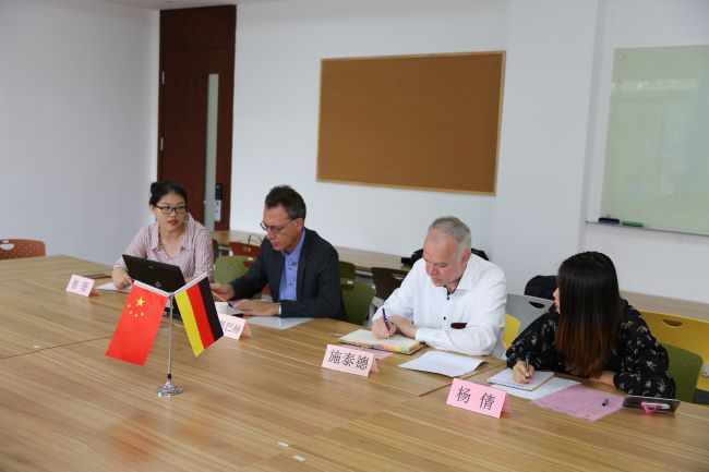 中德工程学院在各方面取得的突出成绩得到了管委会德方代表的充分认可。珀恩·巴赫先生对中德工程学院在提高技术员培养质量、开设无人机应用技术新专业、选派学生赴德深造等各方面的工作表示肯定。对正在开展的机电一体化技术专业AQAS国际认证工作会给予大力支持。施泰德先生针对技术员培养,希望在提高学生专业水平和实操能力的基础上,加强技术员宣传,让学生得到更多企业的认可。他也非常愿意介绍更多的德资企业为学生和教师提供培训和企业实践的机会,并拓展校企合作新模式。在师资培养方面,可以尝试在原来培训项目的基础上,选派优秀教师赴德参加周期在一年以上的培训项目,以更好地带动国内专业老师的专业能力和教学水平。