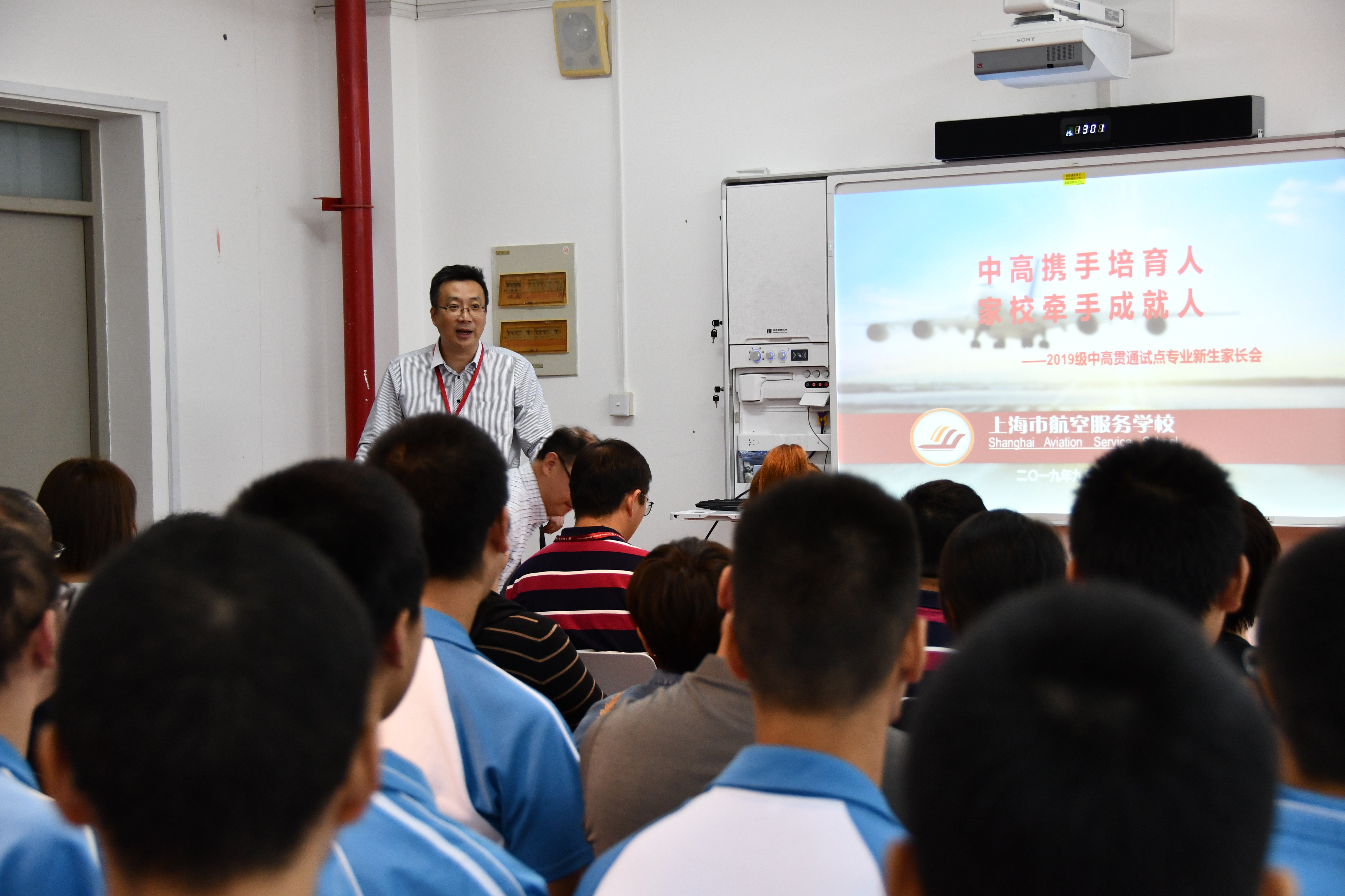 2019年9月21日,为积极响应上海市教委提出的召开贯通培养新生家长会的工作要求,提升人才培养质量,也为使家长、学生了解中高职教育贯通培养模式和职业教育特点,以便在未来五年内形成共同育人的良好氛围,帮助学生更好地适应学校生活,召开了2019级飞机电子设备维修专业中高职贯通试点工作新生家长会。