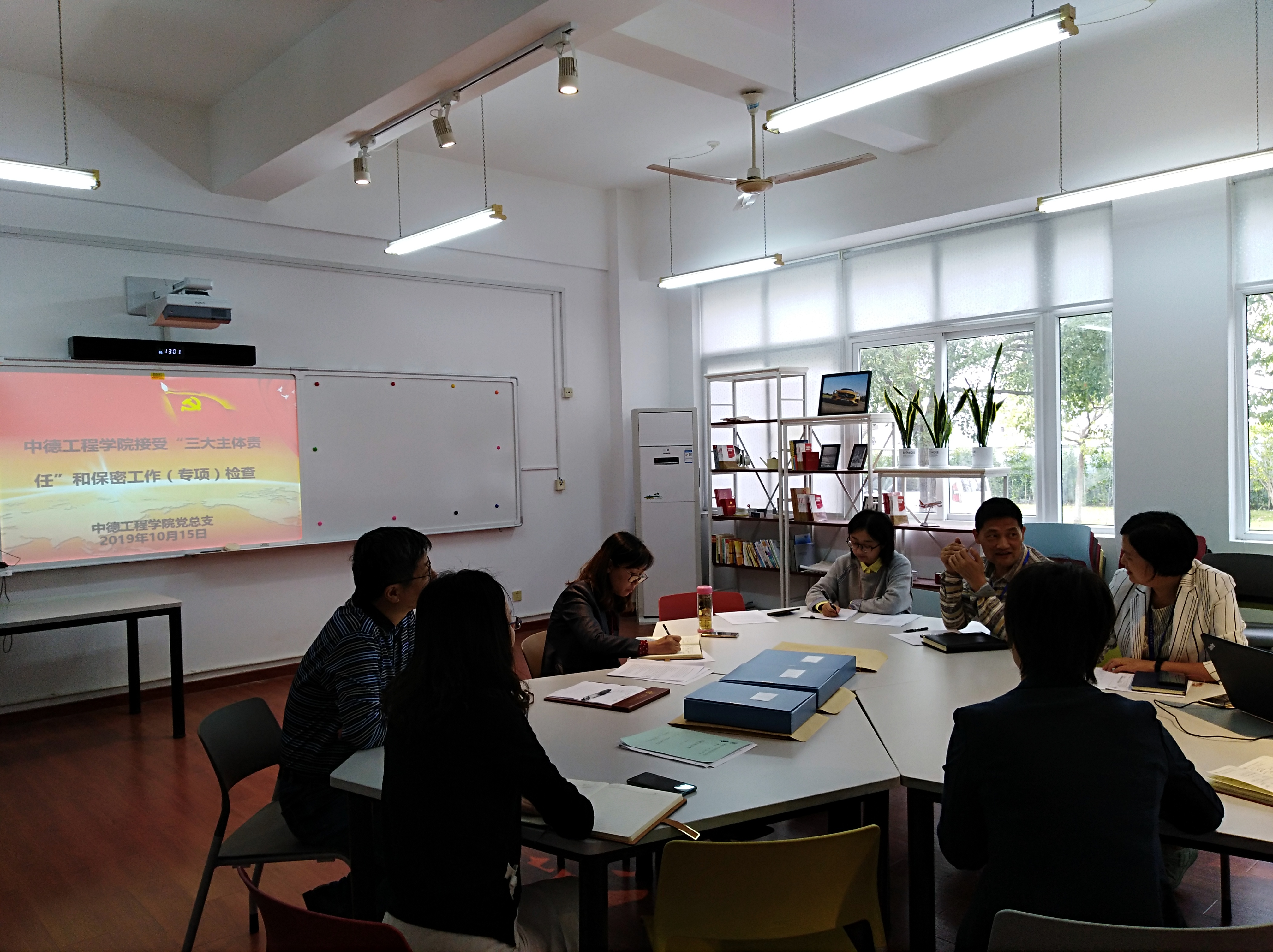 检查组一行通过听取汇报、访谈、个别谈话等形式了解中德工程学院落实“三大主体责任”和保密工作开展情况进行专项检查,检查组分头查阅中德工程学院在意识形态、党风廉政、基层党建和保密工作台账等方面执行情况。