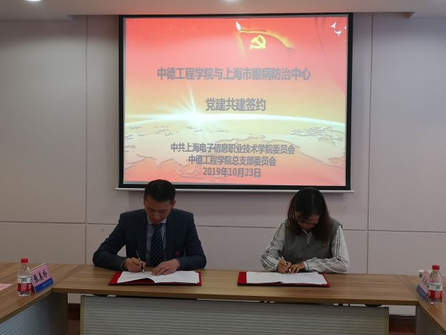 双方在介绍本单位情况、表达共建愿景之后,经双方充分协商,中德工程学院党总支书记张峻颖与上海市眼病防治中心党委书记邹海东签订了《党建共建协议书》,为后续进一步深化合作奠定了坚实的基础。(供稿:中德工程学院党总支)