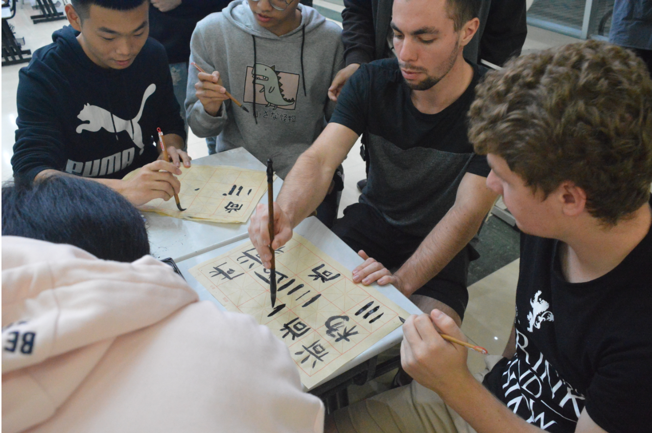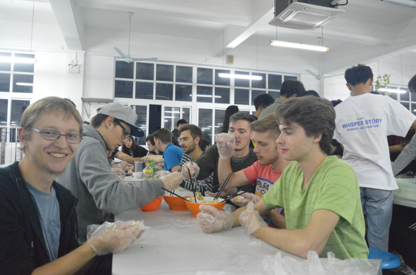 本届文化周受到我院师生的高度重视,更是提前几个月开始酝酿、策划以及创建。1021日第四届中德文化周开幕式在I402多媒体教室如期举行,活动从观看中德工程学院第三届中德文化周短片开始,以大合唱《我爱你中国》结束,期间不论是慷慨激昂的朗诵还是风趣幽默的相声,都无一不深动诠释着本届文化周的大主题“峥嵘70载,共圆中国梦”。1022日在F211的新一届团学干部破冰团建,旨在通过一个个有趣的小游戏来打破彼此间的陌生感,在提升各部门新生之间的沟通与联系的同时,也为中德工程学院今后团学工作的顺利开展打下牢固的人力基础。1023B楼大厅举行的中国民间艺术交流活动从民俗特色、传统文化等入手,呈现了中方优秀传统文化的独特魅力与内涵。随后围绕活动主题开展的文墨和手工这两个版块活动,成功地把德国友人带入到华夏文化享受和体验当中,无论是书法笔锋的苍劲有力,又或是折纸及绳结的传统艺术,均吸引德国友人的长久驻足。1024食堂二楼开展的每“食”每刻之中德美食文化交流活动,通过德国学生介绍的餐桌礼仪、日常饮食、特色美食等,不仅为我们展现了感官上的诱惑,更是中、德餐桌文化在台上的一次激烈对碰。而中华传统美食的手艺展示及现场教学使整个活动氛围达到了顶峰,虽然两国学生之间交流有着语言的不便,但这并不影响同学们的热情,活动现场人头攒动、欢声笑语、其乐融融。