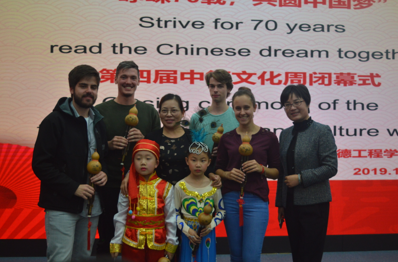 美好的时光总是短暂的,再大的舞台也终有落幕之时,2019年10月28日第四届中德文化周在C108报告厅隆重闭幕,大家共同欣赏了德国学生带来的葫芦丝演奏《龙的传人》以及巴拉利亚诗歌合唱,徜徉在双方魅力文化交融时刻的同时,再次感受到异域文化的魅力与特色。活动尾声一首气势磅礴的大合唱《我和我的祖国》,成功为本届文化周活动画上了一个圆满的句号。