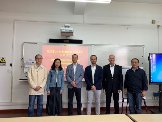 航空机电专业教学德国专家短期培训班于2019年10月28日~2019年11月1日在中德工程学院圆满完成,德国巴伐利亚州奥古斯堡第一职业学校两位德国专家Stefan Lechner和RobertStubenrauch为中德工程学院航空维修工程系教师进行培训。