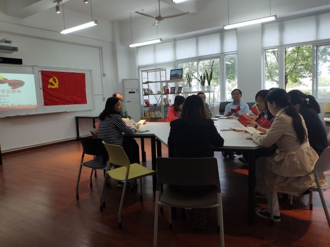 2019年11月6日,中德工程学院教师党支部在中德C105开展了主题教育活动,重温入党誓词,重读十九大修订的新《党章》,增强使命担当责任感。
