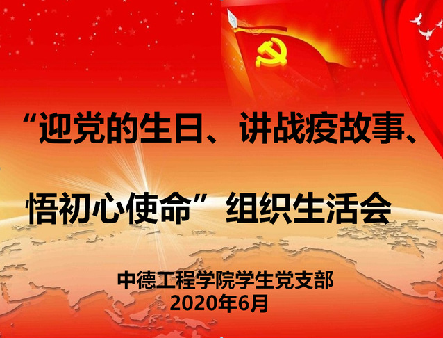 为了迎接党的99岁生日,中德工程学院党总支围绕贯彻落实党中央关于常态化疫情防控决策部署,通过举办一堂专题微党课、召开一场特殊的组织生活会、开展一次“两会”专题学习、收看一堂“党旗飘扬,铸牢红色防火墙”专题微党课,全面加强基层党建工作,强化基层党组织的向心力、凝聚力和战斗力。