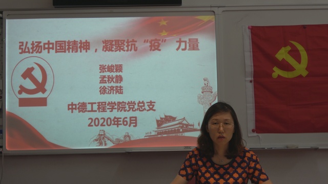 开展一堂“弘扬中国精神,凝聚抗“疫”力量”专题微党课。专题微党课由张峻颖、孟秋静、徐济陆三人共同主讲,党课重点讲述了党建工作在国家建设、发展,特别是在这次疫情防控中的引领作用,共产党人冲锋在前,关键时刻冲得上去、危难关头豁得出来,哪里有困难,哪里就有党员,用行动展现共产党人政治本色。这次疫情,充分彰显了党的领导的强大制度优势,彰显了抗“疫”中的中国精神。