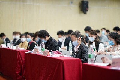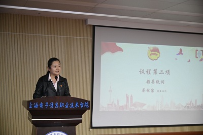 会议开始,全体起立,奏唱《中华人民共和国国歌》。校团委书记蔡林洁致开幕词,她抚今追昔,立足学院实际工作,从“加强思想引领,凝聚青年共识”“着眼学生实际,创新工作内容”“加强自身发展,助力队伍建设”三个方面对学院团学工作提出了新的要求与期望。她表示,希望中德工程学院青年代表和委员们坚定信心、鼓足干劲,以饱满的精神状态,求真务实的工作作风积极开展团学活动,为学院精神文明建设献计献策,矢志奋斗。