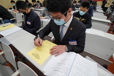 在引见上届团总支及学生会委员后,大会筹备工作组组长邱佳鑫宣读筹备工作报告,随后竞选正式开始。各候选人依次围绕自身基本情况、竞选原因及未来工作展望发表演讲。到场学生代表、团员代表秉承公开、公平、公正、惟贤惟德的原则,通过无记名投票选举产生了团总支、学生会新一届委员和主席团。