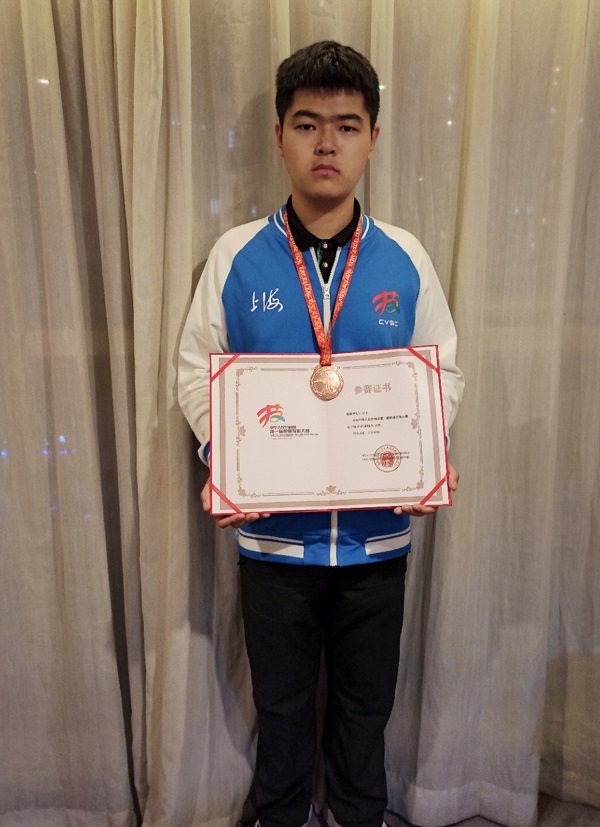 施辰宇同学在为期三天的比赛中,表现沉着冷静,按照教练组制订的技战术稳定发挥,克服诸如场地环境嘈杂、竞赛工具使用不顺手、竞赛对手实力强劲(部分选手是企业在职人员、职业院校教师、世赛超龄选手)等困难,在28名选手中排名第八,喜获优胜奖。