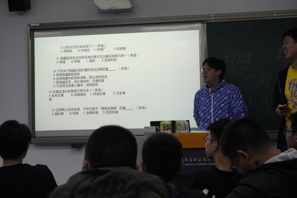 此外,学院还组织开展垃圾分类知识竞赛,各年级各班级学生积极踊跃报名参与活动。活动中,同学们五五分组,积极探讨并思考问题,踊跃抢答。赛后,同学们纷纷表示,通过这次活动,他们对垃圾分类等环保知识有了进一步的了解,以后会从自身做起,正确分类、投放、处理垃圾,做一个爱护校园环境的小卫士。