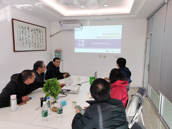 2021年1月19日,中德工程学院机电一体化技术(中德合作)专业罗建华、戴正阳和嵇丽丽对上海宝徕科技开发有限公司和苏州迈创信息技术有限公司进行了调研,校企双方就机械装调与控制实训室共建方案展开了研讨。
