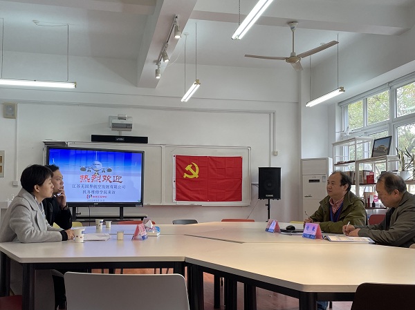 2021年3月18日,江苏无国界航空发展有限公司来到上海电子信息职业技术学院中德工程学院参观考察,中德工程学院党总支副书记、航空系主任孟秋静热情接待了江苏无国界航空发展有限公司培训学院张玉副院长等一行。