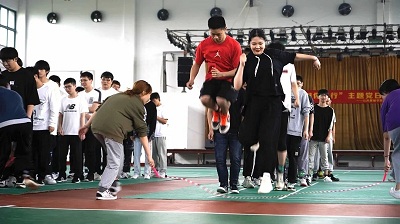 20日上午,郭思化在室内运动场为我院师生带来了一场别开生面的花样跳绳指导课。演示环节,在场师生被世界冠军娴熟而完美的表现深深震撼,纷纷拍手叫好。整个过程,同学们个个精神饱满,意气风发,共同体会坚持、团结、合作的体育精神,切身体会专注做好一件事的这份“匠心”。