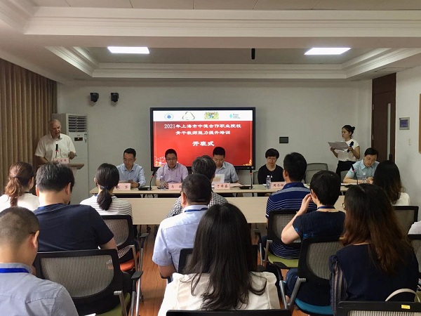 第六期中德合作上海职业院校骨干教师专业发展能力提升培训项目于2021年7月2日在学校徐汇校区举行了开班仪式。上海市教育委员会人事处副处长于希嘉、教育技术装备中心书记周齐佩、职业教育处主任科员马骏、人事处钱晓航,德国汉斯·赛德尔基金会上海代表处首席代表施泰德,上海电子信息职业技术学院党委副书记、校长赵坚、副校长方林中、原党委副书记、校长杨秀英出席开班典礼,来自上海市16所中高职院校的19位骨干教师济济一堂,参加了开班仪式。