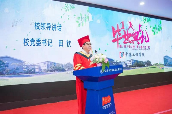田钦书记代表学校和全校师生员工,向顺利完成学业的所有毕业生表示最热烈的祝贺!田书记为同学们提出六点建议:坚守信仰、勇敢追梦、勇于担当、学会感恩、心存敬畏、强健身心,并勉励毕业生们要以实现中华民族伟大复兴为己任,增强做中国人的志气、骨气、底气,不负时代,不负韶华,不负党和人民的殷切期望!最后,他衷心祝愿同学们前程似锦、一生幸福!叮嘱同学们常回家看看,常回母校看看!