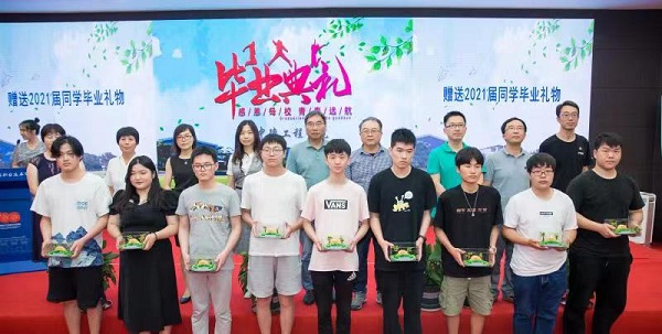 临别之际,学院为每名毕业生精心准备了一份专属的毕业礼物——一套校训石颗粒积木,这些印有校训“尚德修能 知行合一”的积木,承载着电子信息学院对每位毕业生的祝福和伴随,印刻着大学时光的记忆。学院系主任、教研室主任等向2021届学生赠送礼物。希望这份小小的礼物,能捎去学院的不舍与期盼,陪伴中德学子们怀揣校训精神,勇敢面对新的人生旅程。
