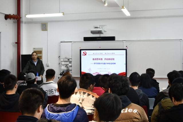 为深入贯彻党的十九届六中全会精神,进一步推动党史学习教育走深走实,12月3日,中德工程学院于C105召开党的十九届六中全会精神专题辅导。马克思主义学院直属党支部副书记江龙老师应邀主讲,我院学生支部全体党员及第十七期党训班全体学员参加。
