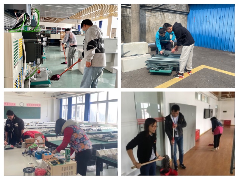 活动中,师生们干劲十足:整理实训器材、擦拭桌面、扫地拖地……不放过每一个卫生死角,认真地清理实训室中积沉的杂物,师生们相互帮助、主动分担,既整洁了实训室又增进了师生情谊,更是增强了师生的责任感、使命感和服务意识。