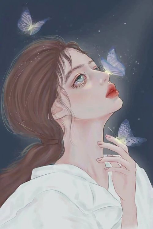 周钱微:整幅画是在黑蓝色的笼罩之下,一束光撒在了女孩的身上,女孩黯然的眼神与光和灿烂的蝴蝶形成对比,暗含着女孩的心情状态是低沉的,女孩向光望去,眼睛中隐含着希望,展现出女孩对光的期待。靠近光,感受,追逐光,成为光,发散光,展现出重生的的意境,犹如蝴蝶破茧而出,黎明破晓之时。万物皆有裂痕,那是光进来的地方,向光而行,破晓而出。