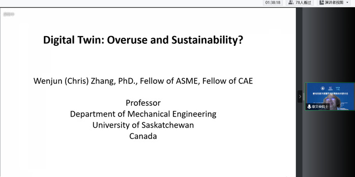 章文俊院士作了题为《数字孪生:过度使用,可持续性?》报告,从Data和Digital的发展过程,讲解了数字孪生的由来和发展现状,指出了数字孪生技术是发源于数字建模,并应用于3D打印领域的一种技术,不用过度放大其作用和带来的经济效益。并提出了数字、数据、人的三元融合,更加有利于智能装备的可持续发展。