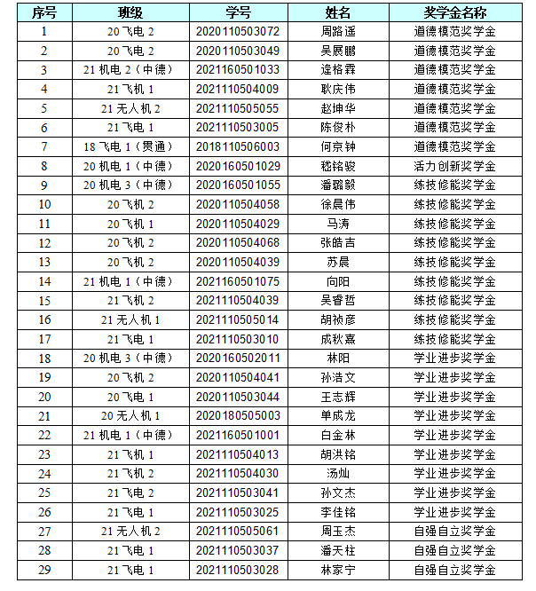 中德工程学院2021-2022学年单项奖学金初审名单公示
