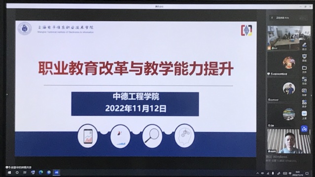 为了提升教师教学设计和课堂思政的能力,切实提高育人水平,同时做好教学能力大赛的备赛工作,11月12日,顾威技能大师工作室举办了职业教育改革与教学能力提升专题培训,邀请了教育部课程思政教学名师、浙江省专业带头人、温州市教学名师邢旭佳教授作专题培训与案例指导,中德工程学院党总支书记、院长王向红教授、副院长黄婷婷、顾威技能大师工作室学员和中德工程学院部分教师应邀参加。